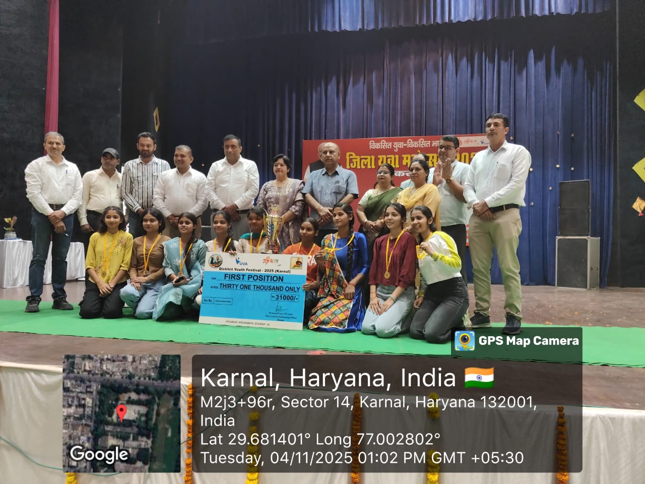 We got 1st prize in District level Youth fest At Pt.C L S G C Karnal on 2/11/25 to 4/11/25